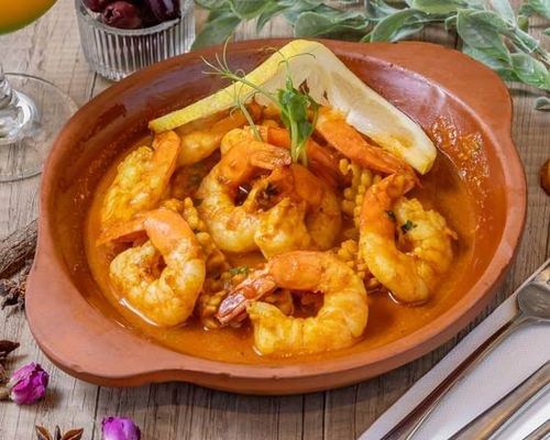 Marinated King prawns, Calamari,mussels Cooked in chef's special Chermoula sauce