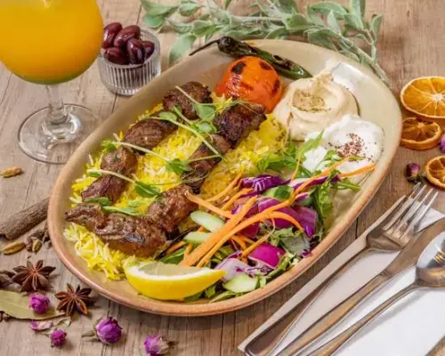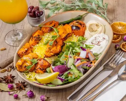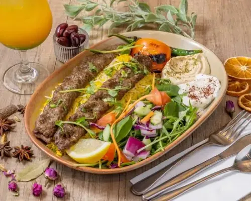 Finely crafted grilled lamb kofta, aromatic spices, served with saffron rice & fresh salad