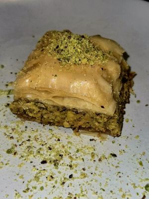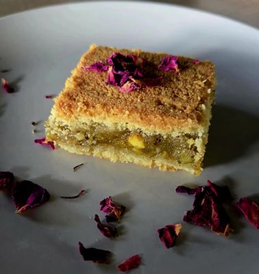 Crispy layers of filo pastry filled with finely crushed pistachios, soaked in a rose sweet syrup