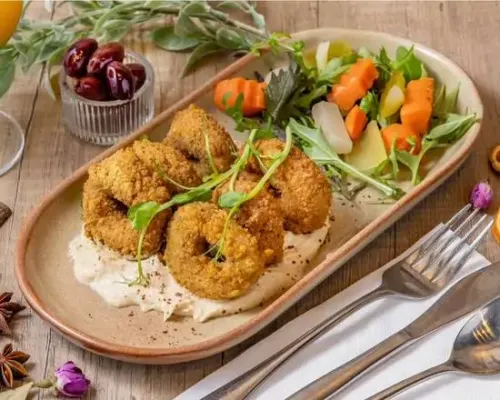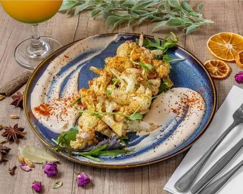 Fried cauliflower, infused spices, topped with Tahini Sauce