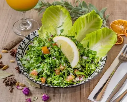 Mixed Fresh Salad with herbs, Sumac, Crusty Bread