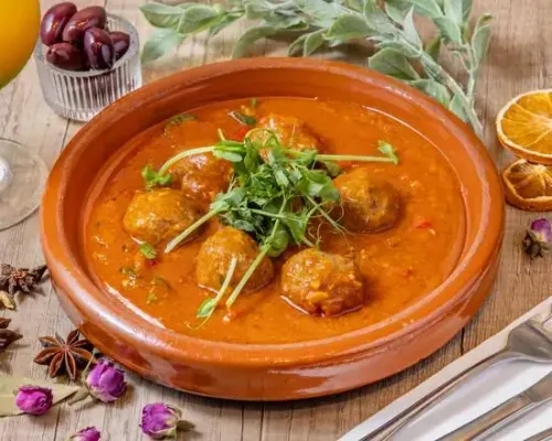 Hearty Moroccan meatballs, slow cooked in zesty tomato sauce and aromatic spices